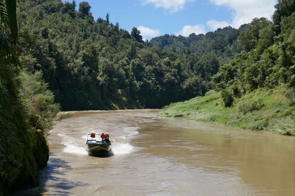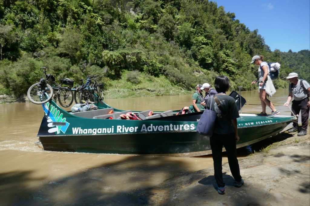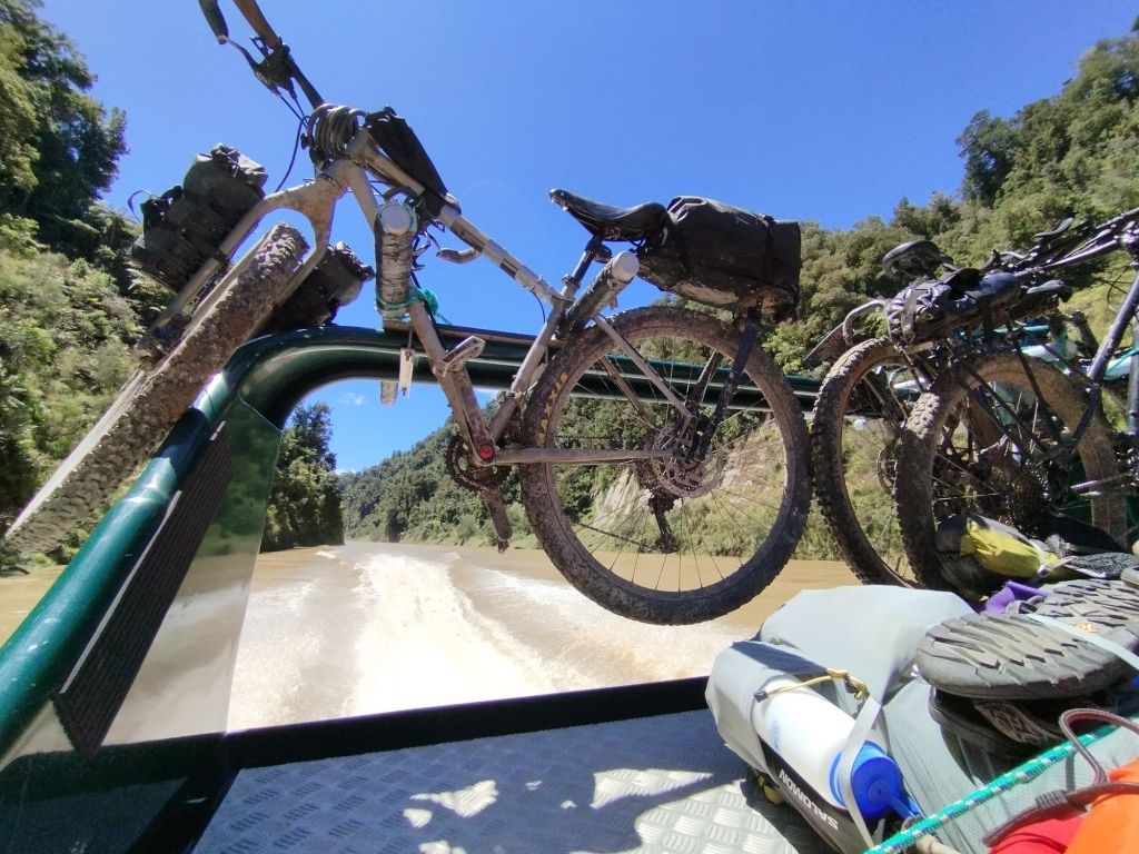 After a day in Taumarunui to sit out a tropical storm, we went across the Whanganui National park over back roads to begin with then on a slippy track over a high pass, the infamous Mangapurua track stopping at Johnsons camp. Hard day! The next day got a jet boat ride to Piripriki, so pretty easy! At the jet boat shelter net Nigel, and Aussy who had been stuck there for two days as the boats weren’t running due to the high river. The hill track was ok once we started to climb out of the valley – it was the odd muddy sections that were a bit tricky for Jane’s trainers more than anything , made pushing uphill a battle at times.