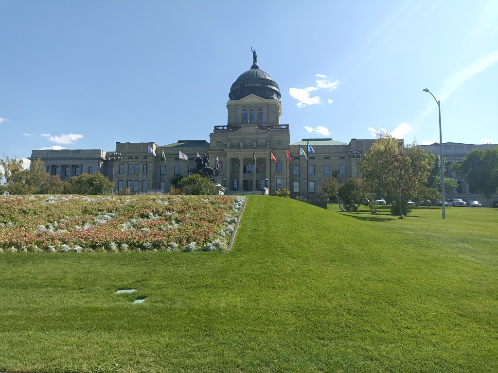 Montana state buildings, Helena. The city is low-key, especially the city centre which was tiny, but pleasant: red brick, old wooden houses on tree-lined streets. It sits on the edge of the hills, above plains that are the source of the Missouri river that feeds the Mississippi. Locally, much is made of Lewis and Clark who made an early exploratory expedition across the northwest USA, opening up the wild territory miles from anywhere. We visited the museum, well worth it but didn’t leave enough time for it!