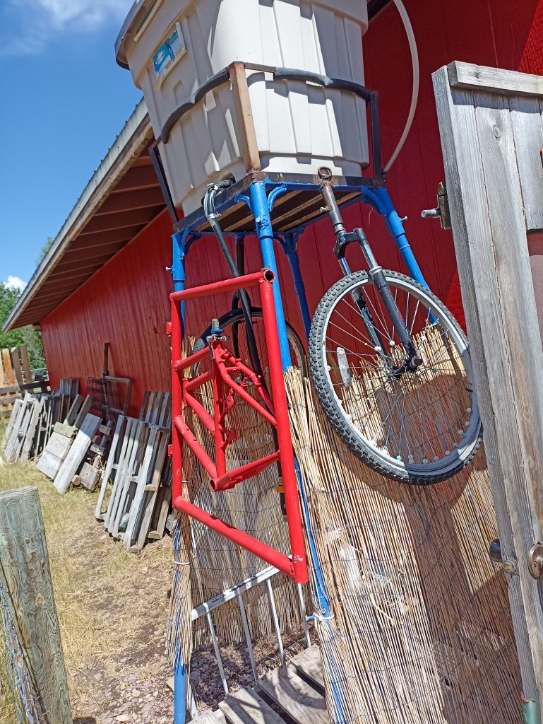This felt a hard day for a short ride, probably feeling the previous day’s effects. Over Stemple pass via a steep “poor man’s creek”. We think we saw the back end of a grizzly on this track, which gets steeper and steeper, eventually a walk. Then onto a better forest road over the ridge which is on the continental divide and down to Llama ranch. This bit of the continental divide is quite stark geographically, dividing the headwaters of the Missouri/Mississippi from the southeast end of the Columbia basin that goes out to the Pacific. Llama Ranch is one of the few focal stopovers on the whole trail. It’s free, run on a “give forward” charitable model by a very amenable couple. Drinks, sandwiches, quirky cabins, llamas, and an open-air water tank shower( gave that a miss!).