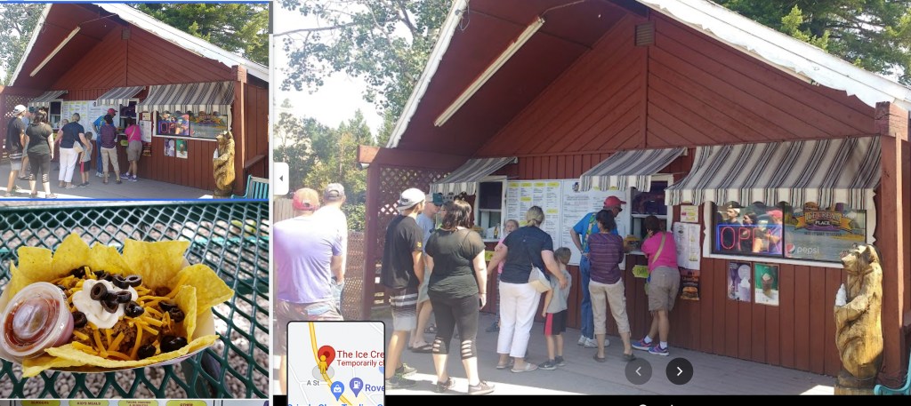 The ice cream place at Seeley Lake: ice cream milk shakes and cheesy “pots” yumm..