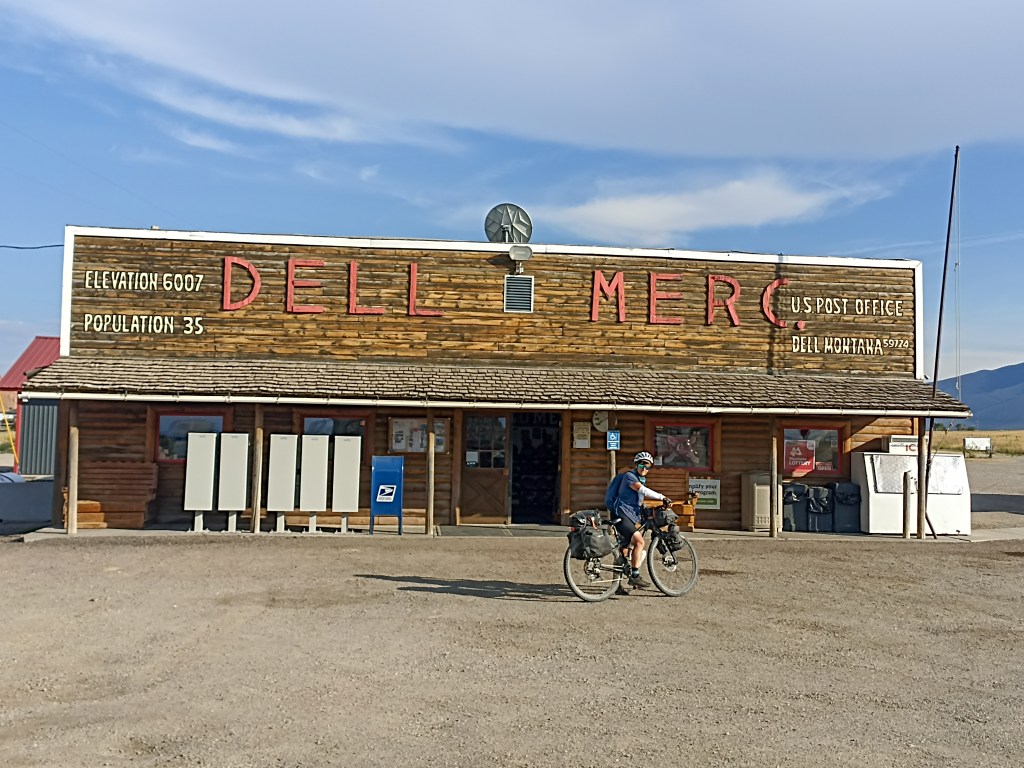 We passed near Elkhorn hot springs, a popluar stop over, and refilled groceries at Ma Barnes Country Store, a really well-stocked small shop in this remote valley. A highlight was the post office at Polaris, pretty much the smallest in USA, to pick up a spare gear change lever that we had ordered via Amazon( Jane’s was taped up with elastaplast!). Just as we arrived a car pitched up and unloaded boxes from its boot, including ours.