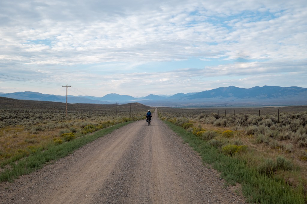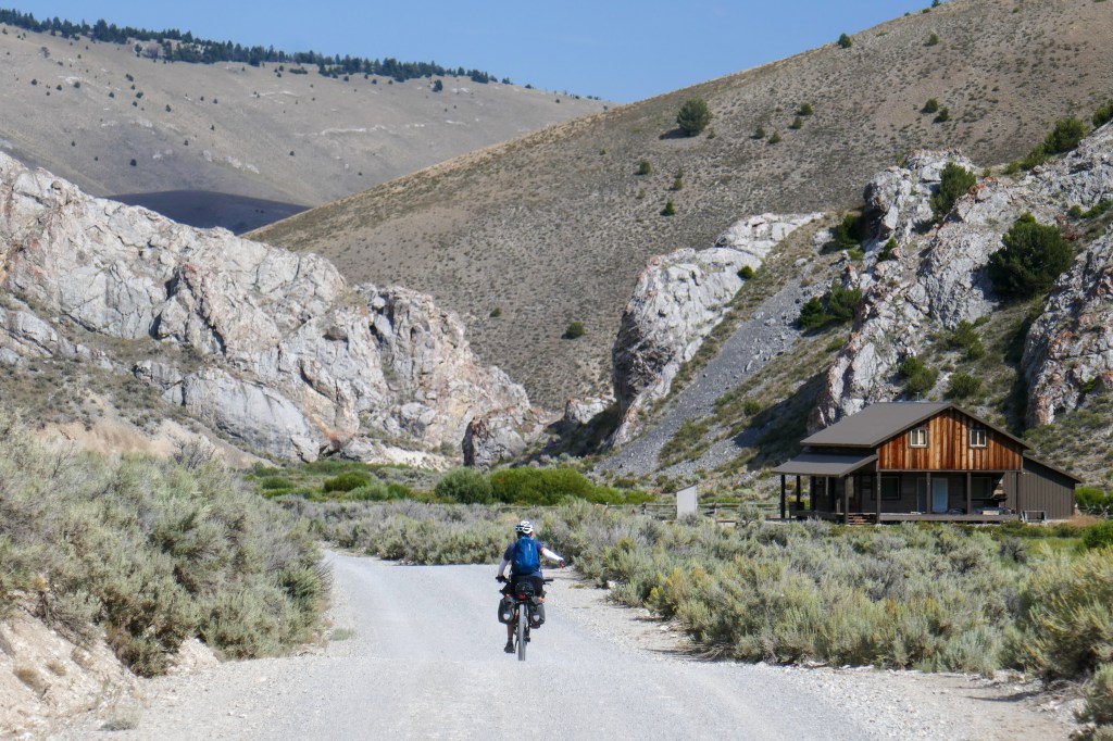 After just one shorter day yesterday, a mammoth day today. This proved to be one of the most commented-on highlights of the GDMBR when talking to others on the route. It goes across wild, wide-open sage-covered land, mainly following a river valley to the distant horizon then rolls across a great plain before threading through a gorge to the main road near Lima. It’s mostly gradual uphill (and we had a headwind) then a great descent through a gorge. The route was an old Wild West-era stagecoach route from Utah to the newly created Montana, and certainly looked the part!