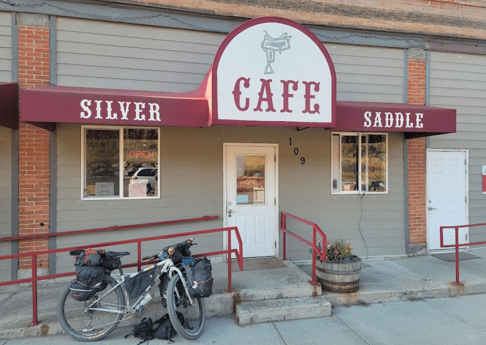 Stopped the night at the Basin Community centre, next to the saloon/cafe, so had a good meal and rest there too. Jane and I slept on the stage! This community centre has a kitchen, power, etc – pay the small fee in the bar next door. It’s possile to keep going and camp somewhere on the way to Butte, but that would miss an excellent stop. One grizzled guy with a huge beard told us he went to Antelope Wells to find out what all the fuss was with the GDMBR, and sell some Elk meat to the Mexicans. He advised us “don’t bother, there is nothing there”!!