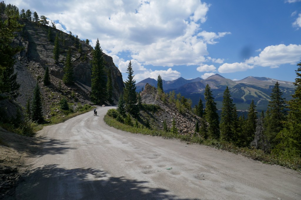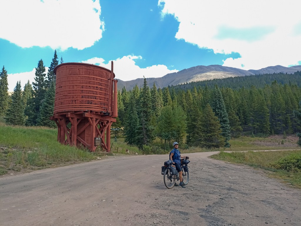 Yet another long day over Boreas Pass at 11500 ft. The day starts gently around Dillon Reservoir on a cycleway then takes a short climb to Breckenridge, a posh Ski resort where we got an expensive ice cream. It then climbs Boreas pass following an old Union railroad track, so a manageable constant gradient.