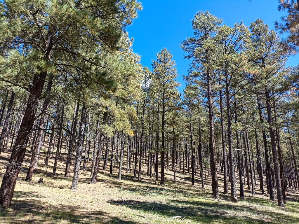Totally waterless day again. We passed a stream about 2/3 of the way, above Canon Plaza, but did not fill up as there was meant to be a small shop there… but it was closed! We had missed it by a few weeks! So we arrived in this remote tiny hamlet, with hardly any food left and no water- so we asked a guy in his garden to fill up in his house, which he was very happy to do. We didn’t have the heart to ask for any food, so as soon as we left the hamlet we scoffed the last few nuts and an energy bar each on the roadside before tackling the final corner of Carson National Forest, through pretty wooded mountains northeast of Abiquiu.